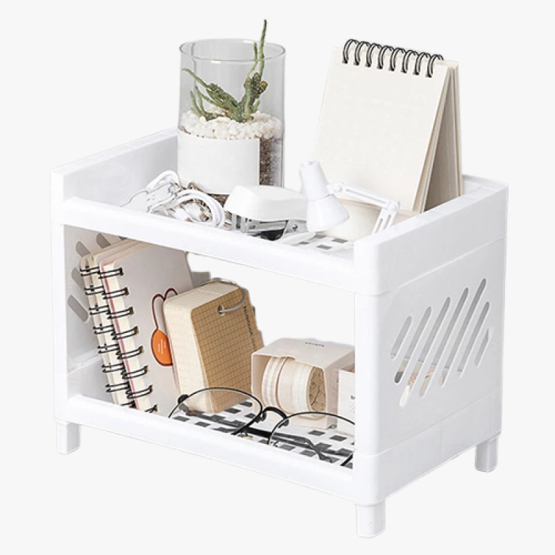 Its rectangular two-tier design maximises space without taking up too much room on your desk. Simple and minimalist in white, it blends seamlessly with any décor—perfect for school desks, home offices or makeup stations.