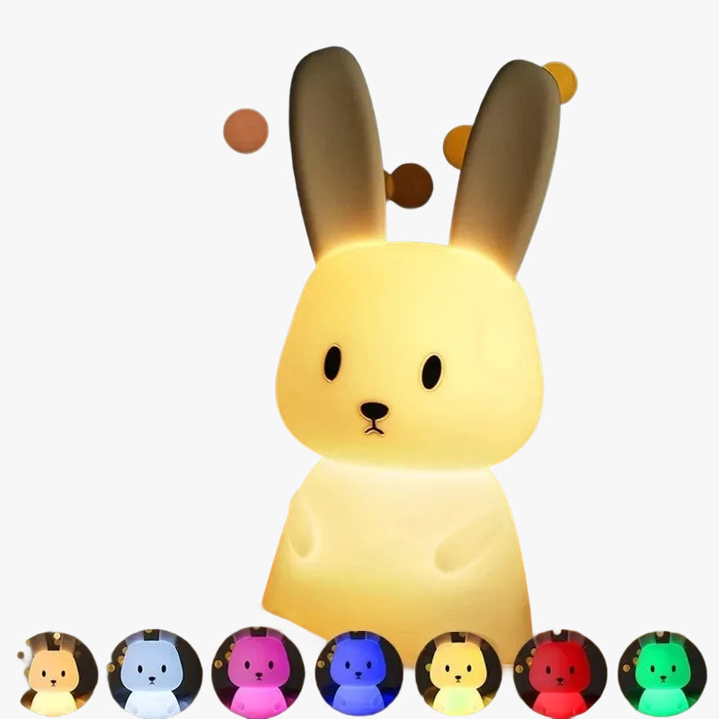 Luz nocturna de conejito de silicona suave con control táctil y 7 modos de color