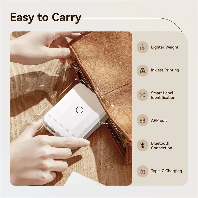 Con una batería recargable de 1500 mAh , ofrece horas de uso continuo y se carga rápidamente mediante el puerto Tipo C. Ideal para almacenamiento doméstico, archivos de oficina, material escolar y pequeñas empresas , puede imprimir etiquetas de productos, etiquetas de dirección, identificadores de cables, pegatinas para frascos, etiquetas para joyería y mucho más.
