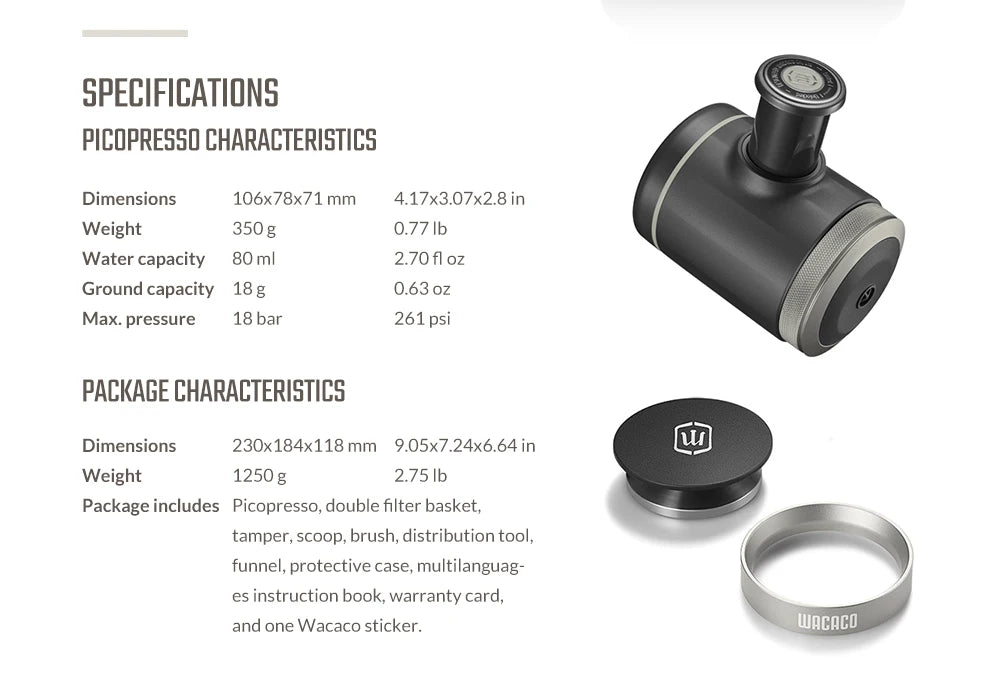 Crafted for coffee lovers who enjoy the process as much as the result, the Picopresso lets you master every shot. With its naked portafilter, 18-bar pressure, and refined manual operation, you're in full control of grind, tamp, and extraction. Whether you're at home, camping, or travelling abroad, this powerful mini brewer is your passport to exceptional espresso anywhere.