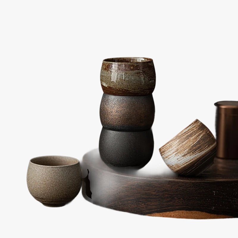 Each cup showcases natural textures and ancient-inspired design, offering a tactile and visual experience that enhances every sip. Whether you're brewing delicate oolong or strong pu-erh, this cup brings a touch of quiet elegance to your tea journey.