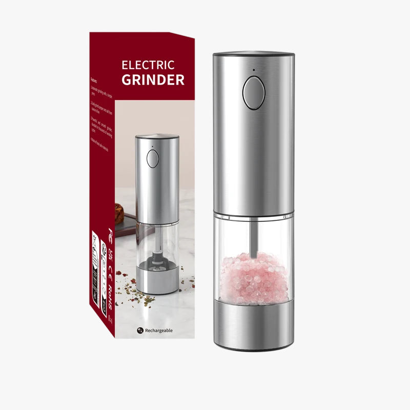 Season your dishes effortlessly with this rechargeable electric salt and pepper grinder. Crafted from durable stainless steel with an elegant, modern design, it’s built to resist corrosion while looking stylish on any dining table or kitchen counter.