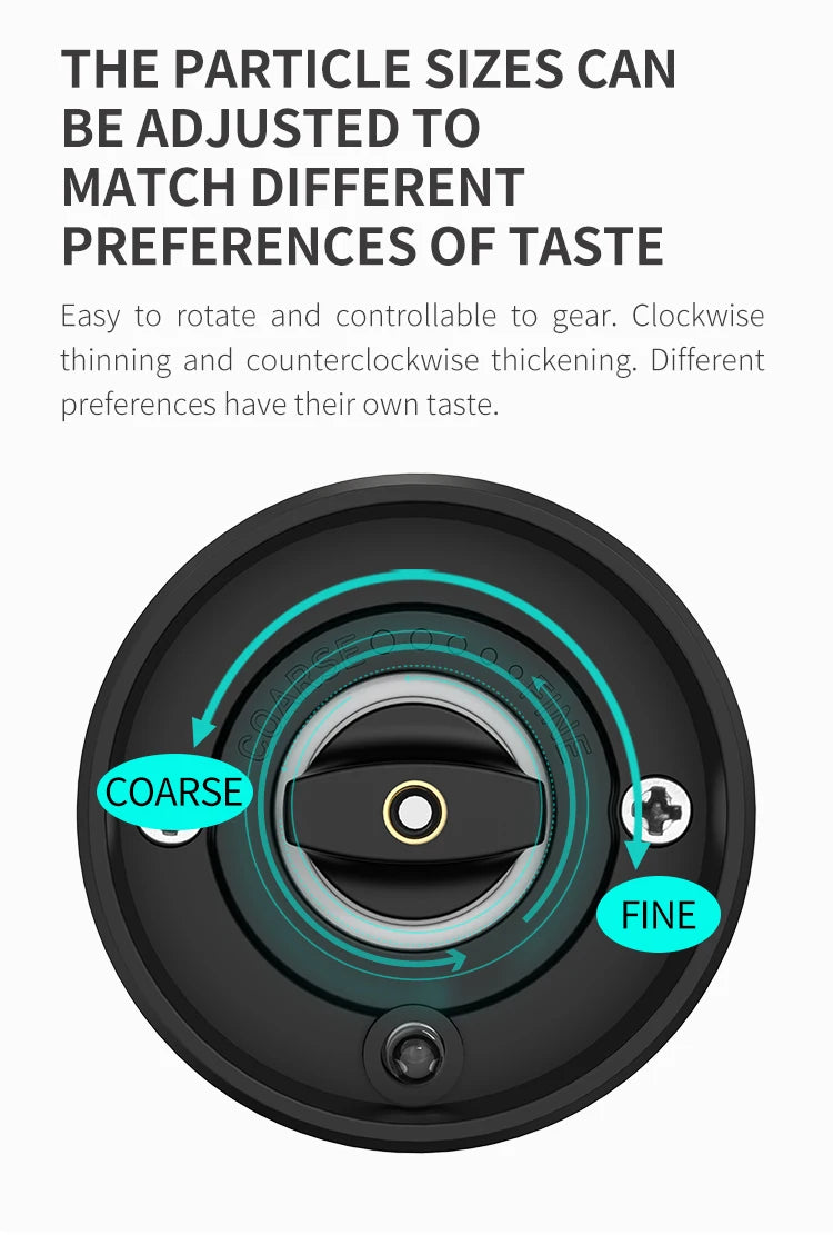 Adjustable Coarseness – Five precise grind settings from fine to coarse.