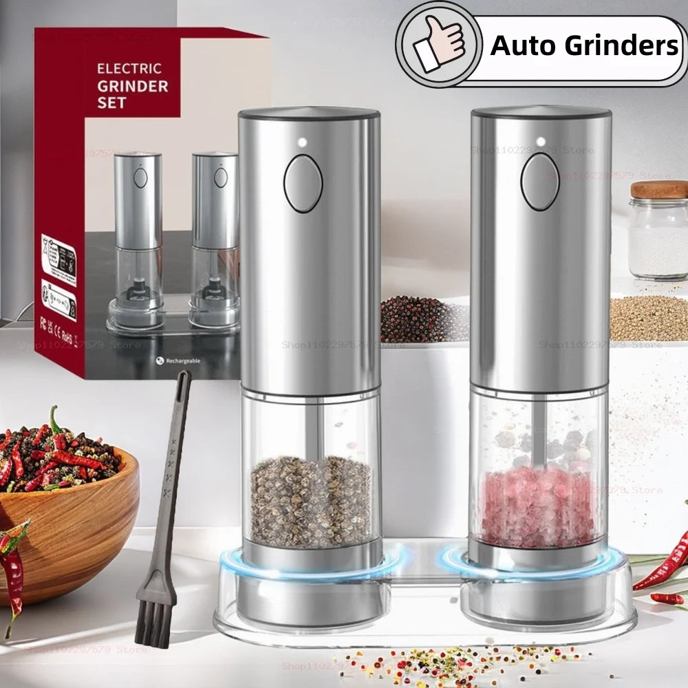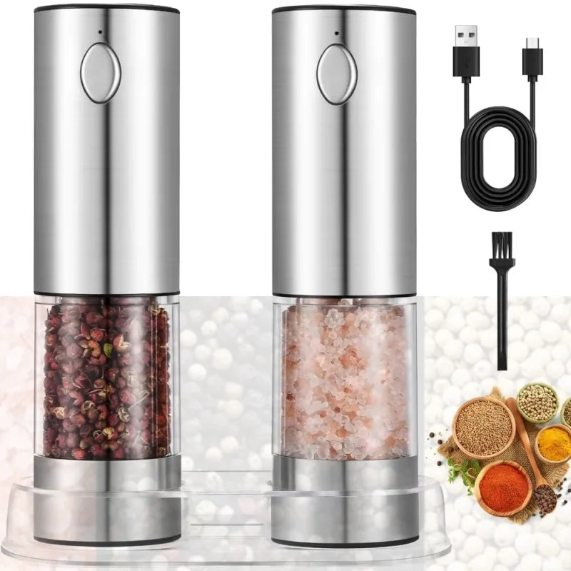 Wireless Electric Salt & Pepper Grinder Stainless Steel Adjustable